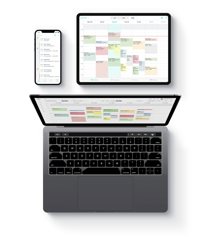 Whether on iPad, laptop, or on the go with your phone – your Shore calendar is with you everywhere. Take photos after a treatment, upload them via phone, and check them later on your laptop. No problem!